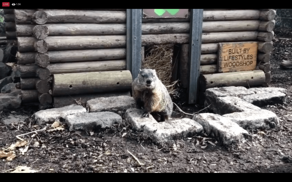 At 8 a.m. I logged onto the Zoo’s website and was treated to a wonderful display of historical facts about our beloved groundhog and his holiday. The video went on to talk about other attractions at the zoo, which is open. Then did a countdown to going live to the prediction. To me, this was more exciting than the countdown on New Year’s Eve.